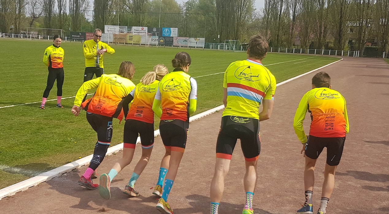 We run every wednesday evening at the Mamer football stadium. We also organise smaller runs before swimming and mix it in with the bike sessions over the weekend.